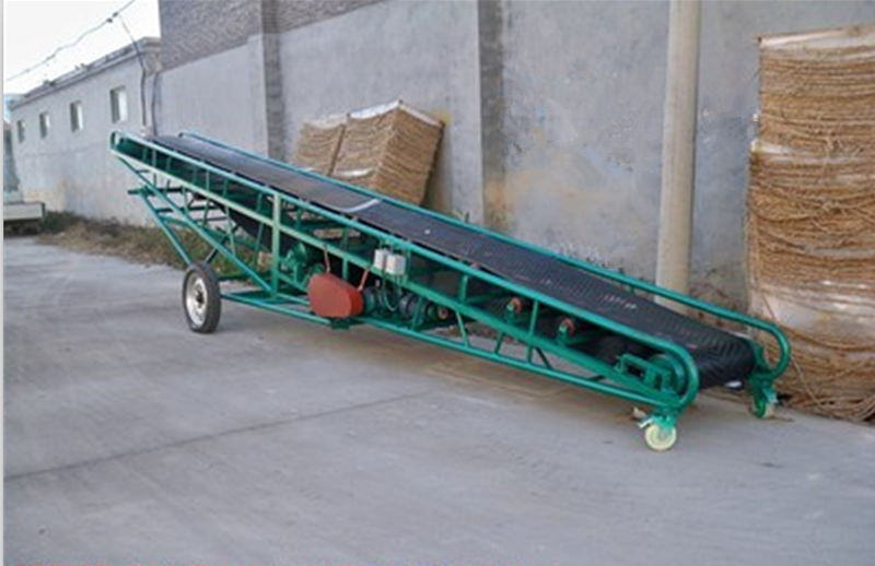 移動(dòng)皮帶輸送機(jī)是一種工效高,使用,機(jī)動(dòng)性好的連續(xù)輸送裝卸設(shè)備。主要用于裝卸地點(diǎn)經(jīng)常變更動(dòng)的場所,如:港口、碼頭、車站、煤場、倉庫、建筑工地、沙石料場、農(nóng)場等,用來短途運(yùn)輸及裝卸散料或單件重量100公斤以下的成件物品。帶式輸送機(jī)主要由兩個(gè)端點(diǎn)滾筒及緊套其上的閉合輸送帶組成。帶動(dòng)輸送帶轉(zhuǎn)動(dòng)的滾筒稱為驅(qū)動(dòng)滾筒(傳動(dòng)滾筒);另一個(gè)僅在于改變輸送帶運(yùn)動(dòng)方向的滾筒稱為改向滾筒。驅(qū)動(dòng)滾筒由電動(dòng)機(jī)通過減速器驅(qū)動(dòng),輸送帶依靠驅(qū)動(dòng)滾筒與輸送帶之間的摩擦力拖動(dòng)。驅(qū)動(dòng)滾筒一般都裝在卸料端,以增大牽引力,有利于拖動(dòng)。物料由喂料端喂入,落在轉(zhuǎn)動(dòng)的輸送帶上,依靠輸送帶摩擦帶動(dòng)運(yùn)送到卸料端卸出 ,由驅(qū)動(dòng)裝置拉緊輸送帶,中部構(gòu)架和托輥組成輸送帶作為牽引和承載構(gòu)件,借以連續(xù)輸送散碎物料或成件品。