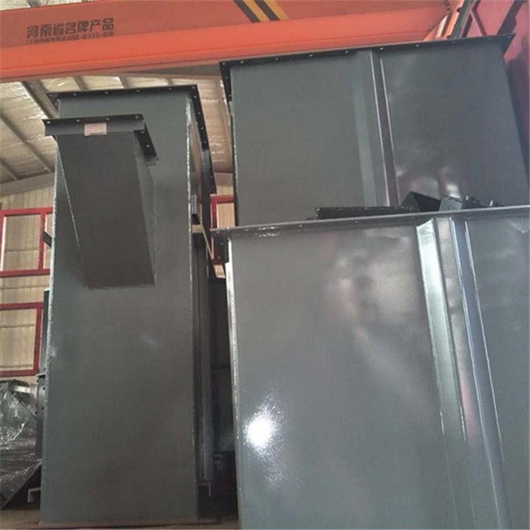 NE型斗式提升機是適用于運送潮濕和流散性不良的物料。深料斗的前壁斜度小而深度大,適用于運送干燥且流散性好的物料。這兩種料斗用在料斗呈稀疏布置的斗式提升機中。利用均勻固接于無端牽引構(gòu)件上的一系列料斗,豎向提升物料的連續(xù)輸送機械。斗式提升機的輸送料斗把物料從下面的儲藏中舀起,隨著輸送帶或鏈提升到頂部,繞過頂輪后向下翻轉(zhuǎn),斗式提升機將物料傾入接受槽內(nèi)。帶傳動的斗式提升機的傳動帶一般采用橡膠帶,裝在下或上面的傳動滾筒和上下面的改向滾筒上。鏈傳動的斗式提升機一般裝有兩條平行的傳動鏈,上或下面有一對傳動鏈輪,下或上面是一對改向鏈輪。斗式提升機一般都裝有機殼,以防止斗式提升機中粉塵飛揚.